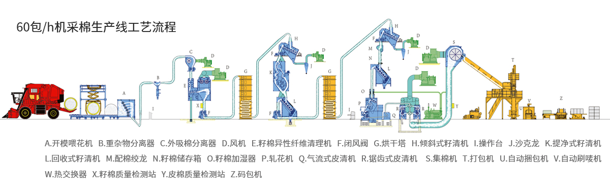 ●籽清线采用并联分布式与轧花机一对一的清理新工艺,不增加清理次数,有效提高籽清线的清杂性能,提高皮棉质量。